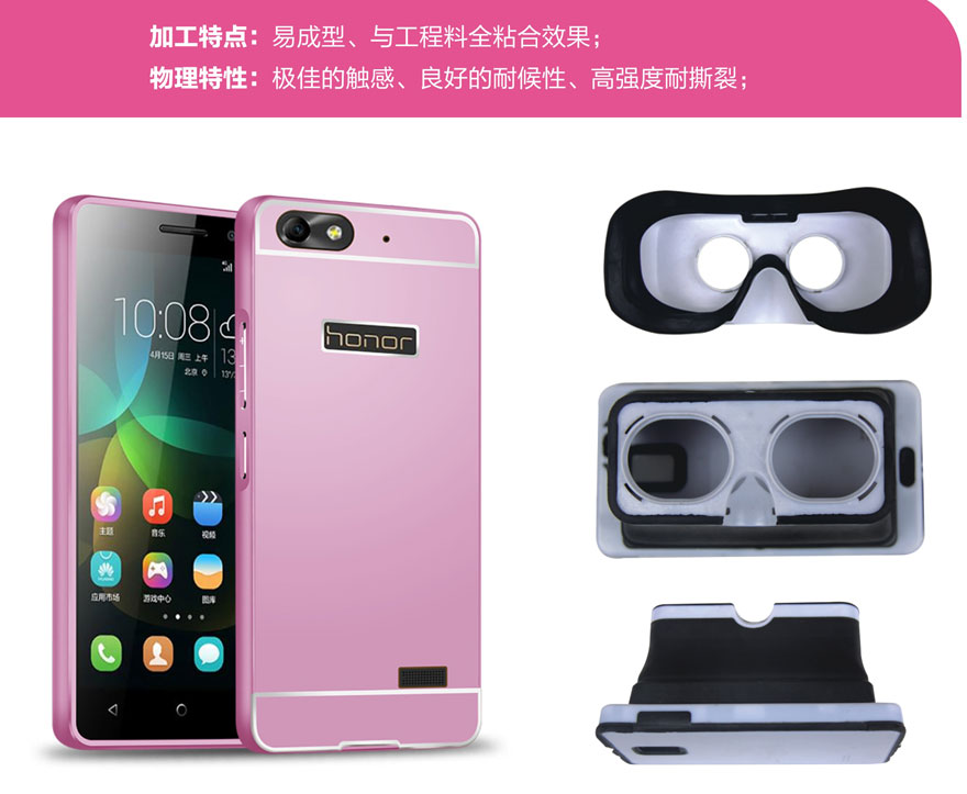 注塑包覆成型。具有良好的流動性,適合小水口進膠,成型加工無分層縮水問題,可與PC,PC+ABS塑料進行優(yōu)良的二次注塑粘合。
